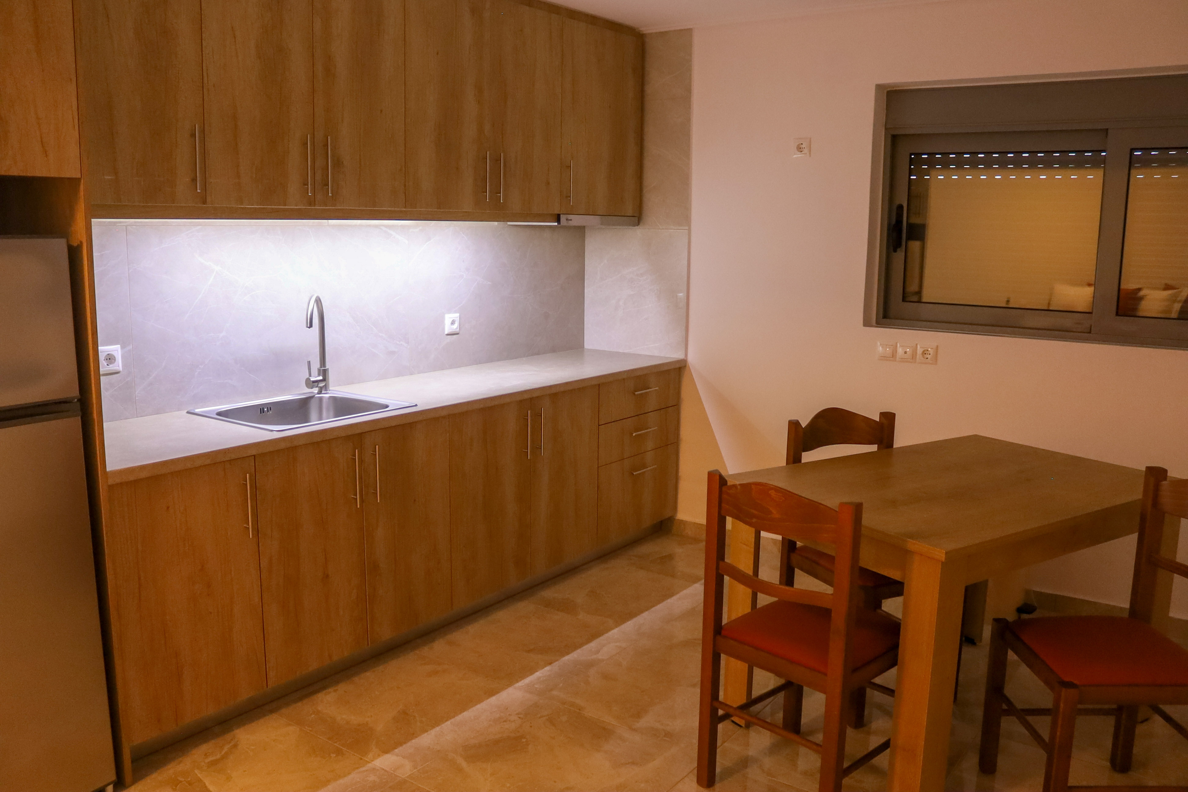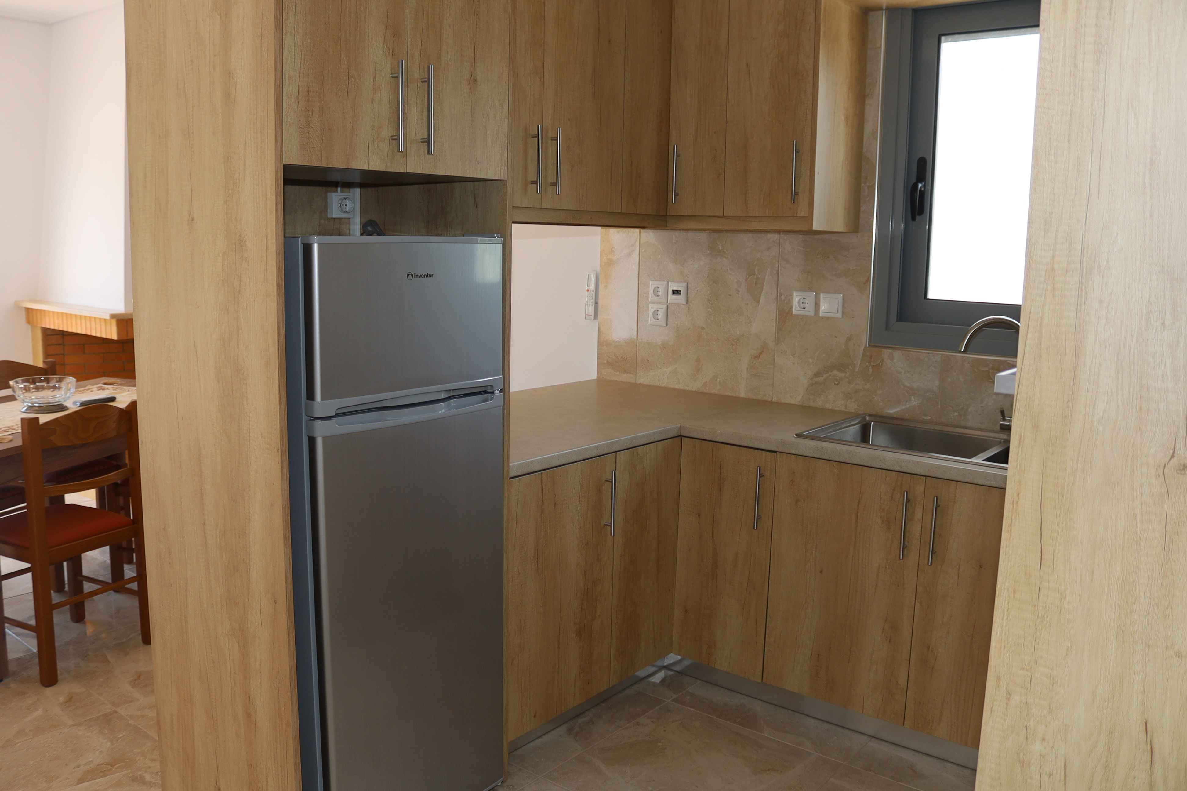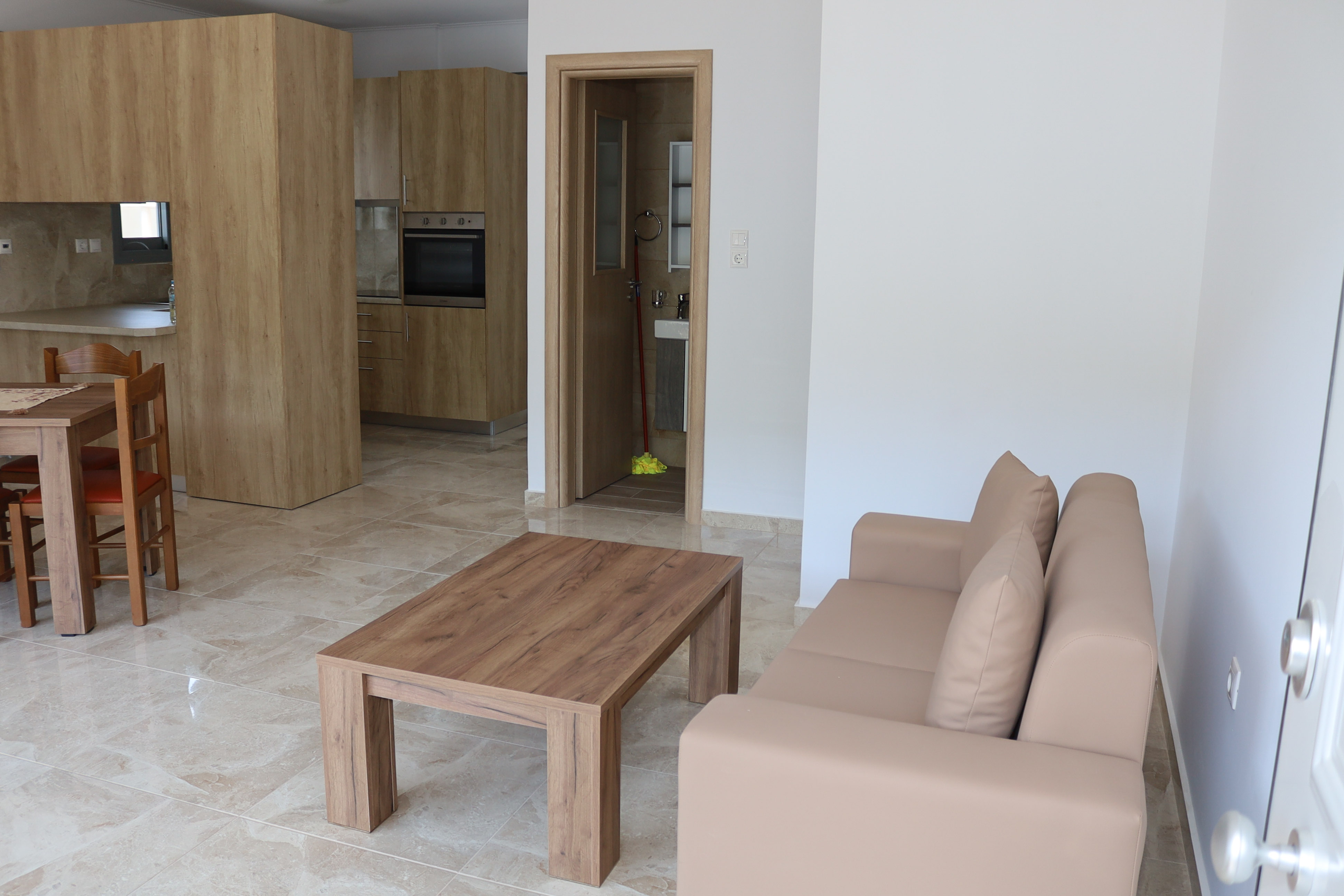 Entrance on the ground floor consisting of living room, equipped kitchen, dining table, bathroom with washing machine.