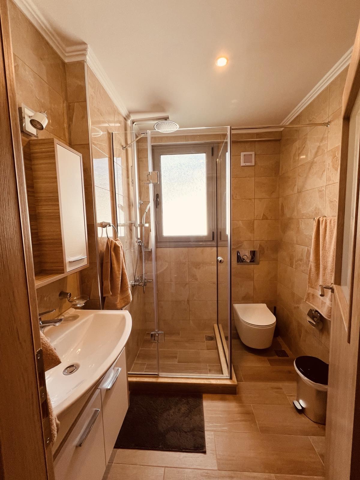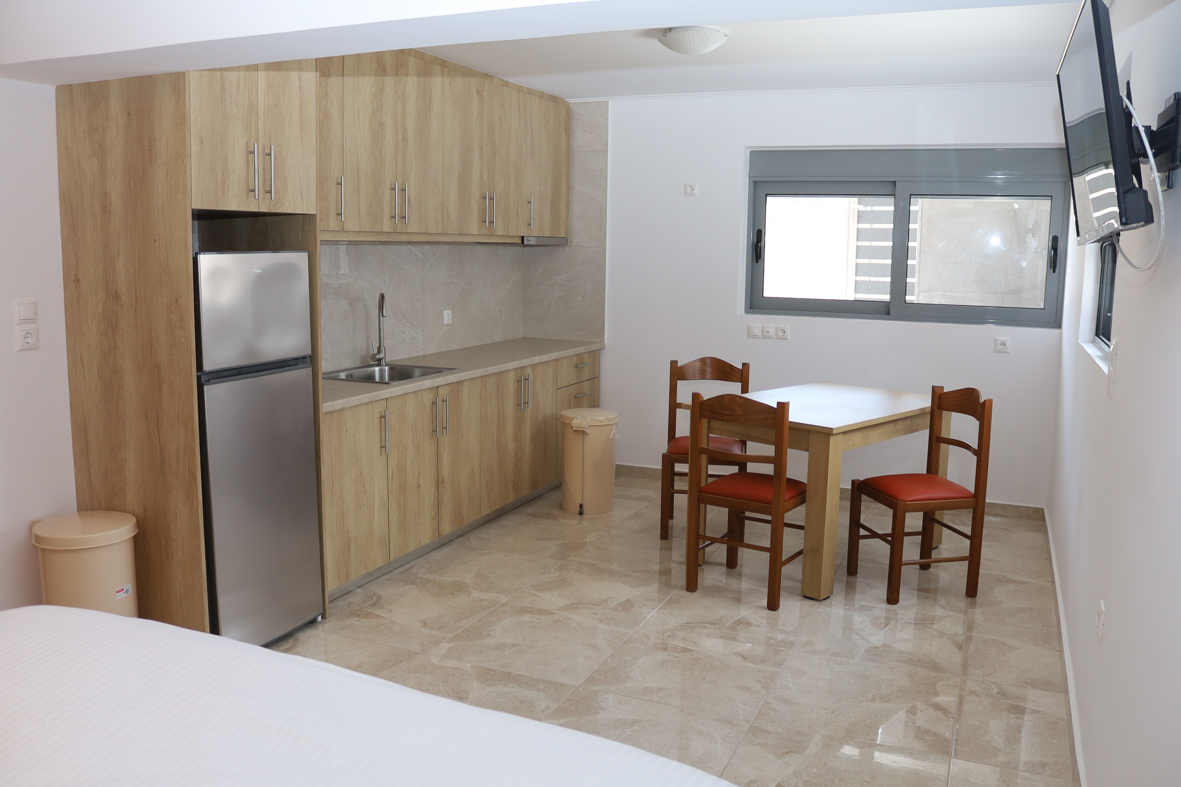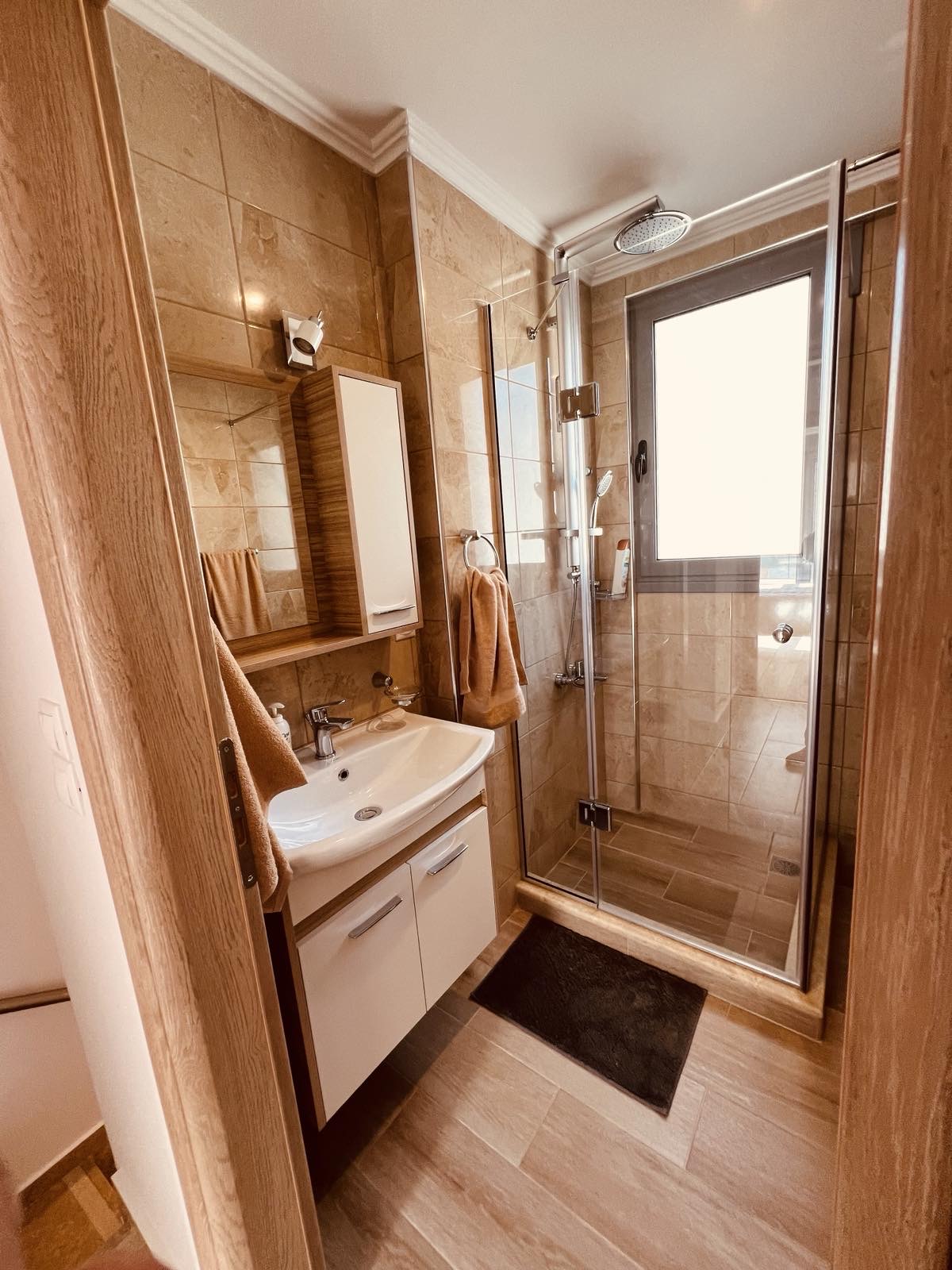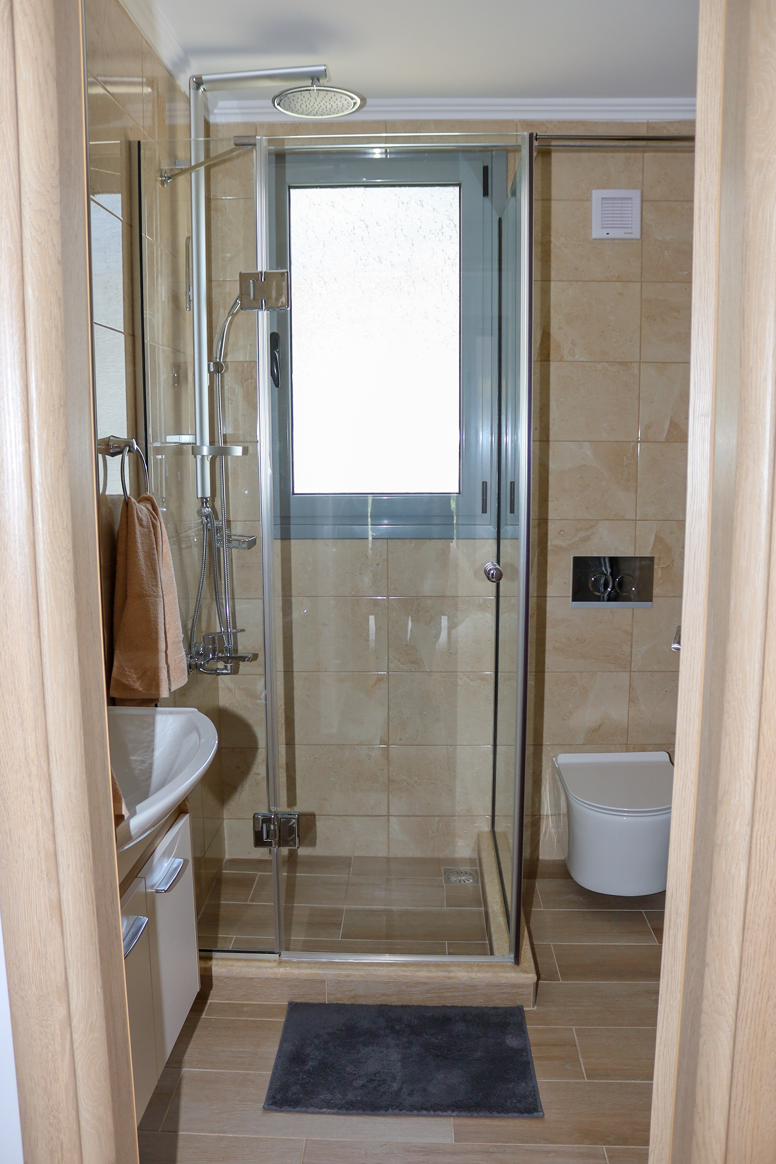 Entrance on the ground floor consisting of living room, equipped kitchen, dining table, bathroom with washing machine.
