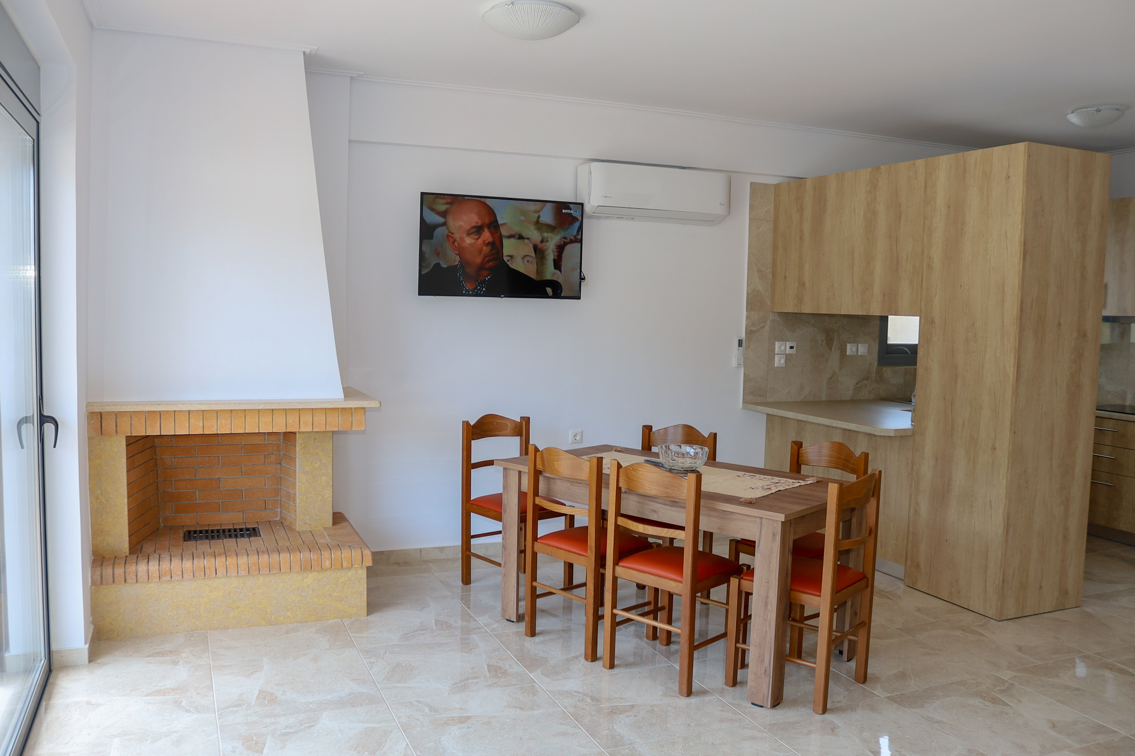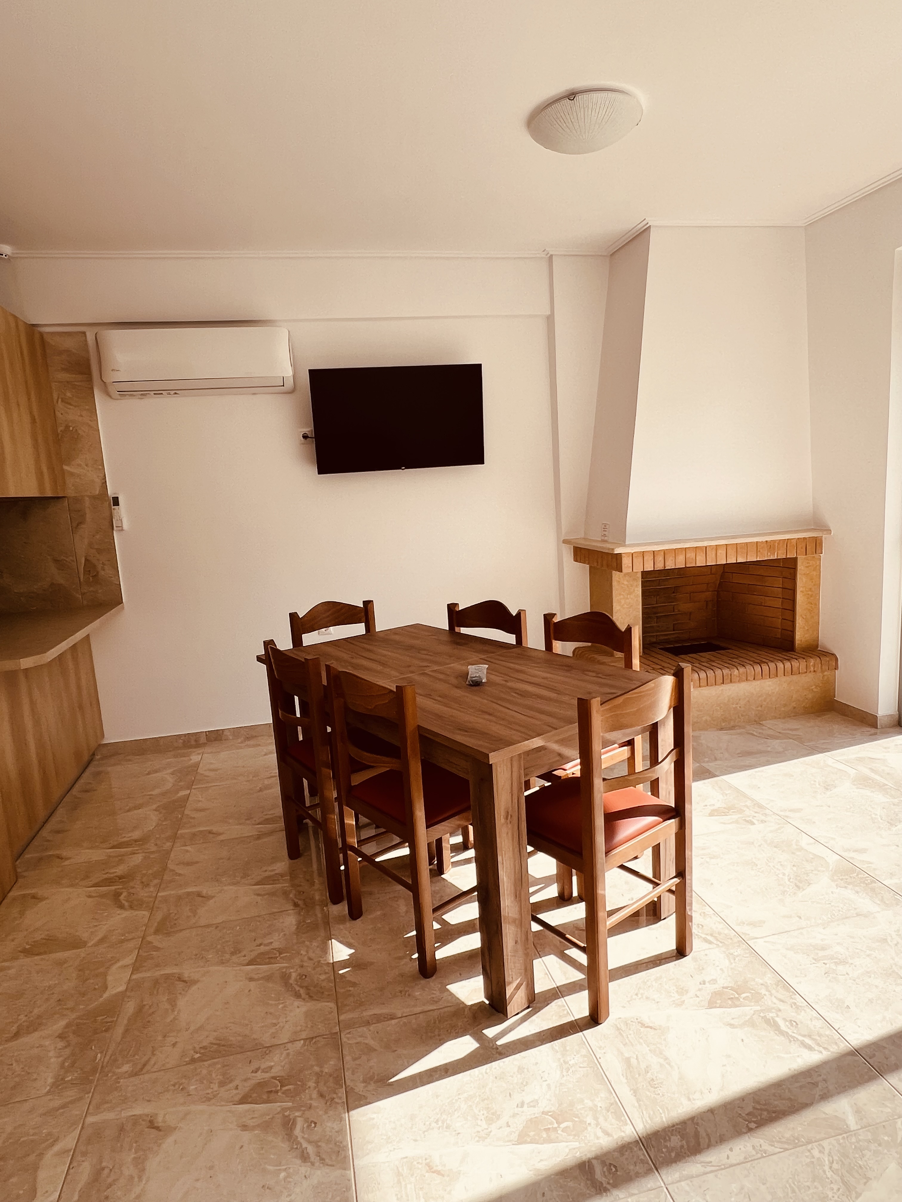 First floor consisting of dining room, sofa, TV, equipped kitchen, bathroom, terrace.