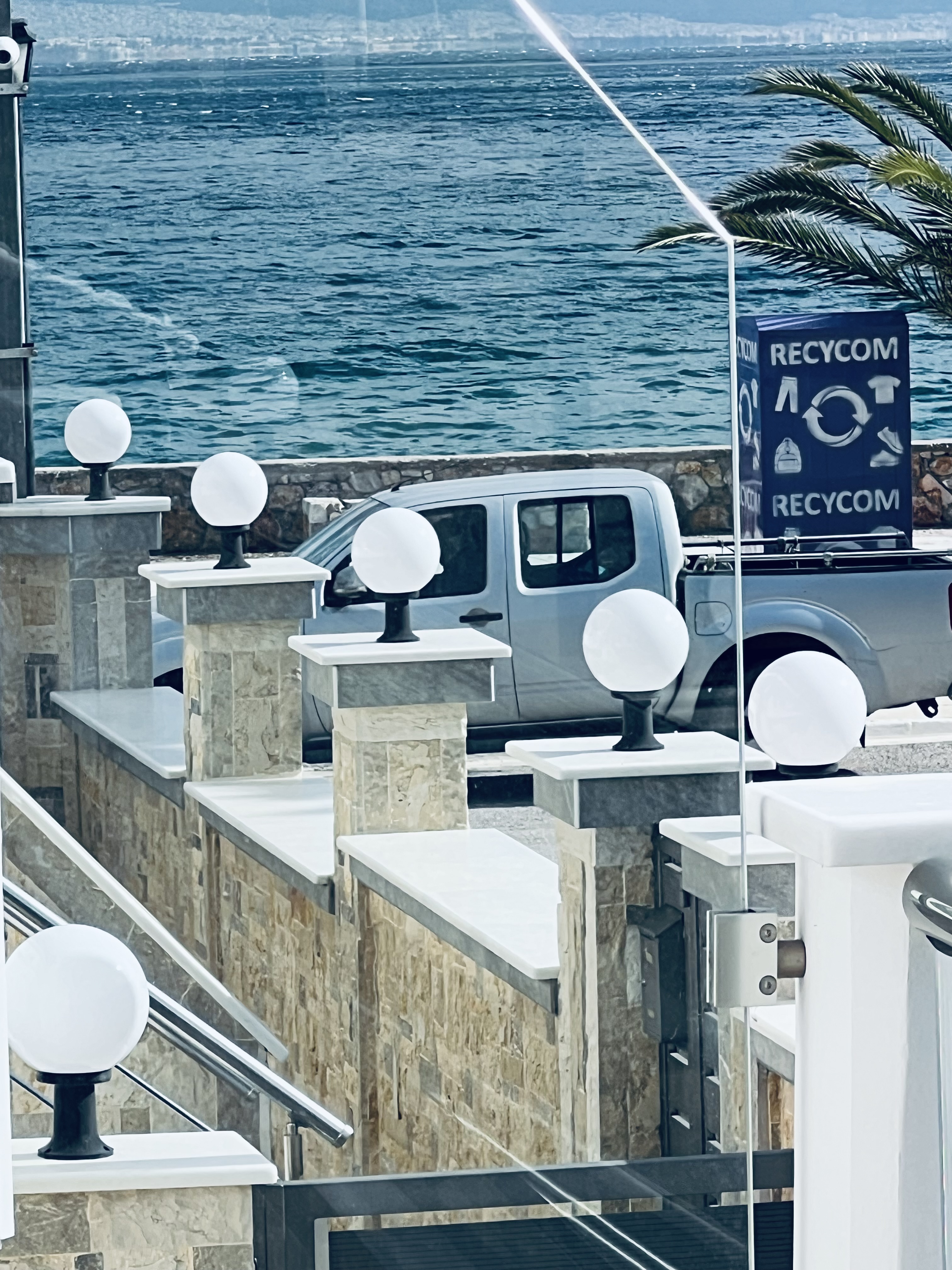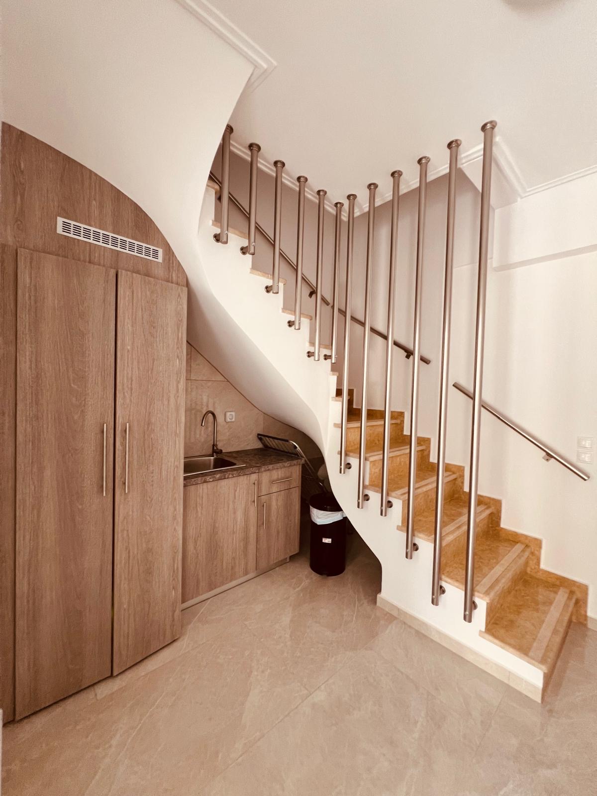 Entrance from glass door on the ground floor consisting of living room, utility room with sink and washing machine.